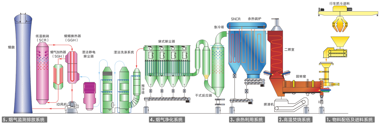 【(SNCR脫硝)】+【急冷塔】+【干法脫酸】+活性炭活性炭+【袋式除塵器】+【洗滌除霧塔】