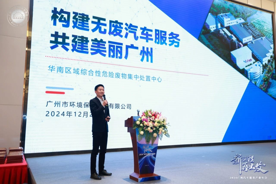 2024年12月24日,廣州市汽車服務(wù)業(yè)協(xié)會(huì)主辦以“新征程 再出發(fā)”為主題的“2024廣州汽車服務(wù)產(chǎn)業(yè)年會(huì)”,廣州市商務(wù)局、市貿(mào)促會(huì)、市工商聯(lián)、市工信局、市公安車管等相關(guān)政府部門領(lǐng)導(dǎo),全國乘用車信息聯(lián)席分會(huì)、省市汽車行業(yè)協(xié)會(huì)負(fù)責(zé)人,以及廣州地區(qū)汽車經(jīng)銷集團(tuán)、汽車經(jīng)銷店、二手車市場及經(jīng)銷企業(yè)、汽車出口、汽車后市場、汽車金融保險(xiǎn)等企業(yè)代表齊聚一堂。廣汽商貿(mào)作為廣州市汽車服務(wù)業(yè)協(xié)會(huì)會(huì)長單位,總經(jīng)理李勇應(yīng)邀出席年會(huì),并攜廣汽商貿(mào)廣州地區(qū)22家成員企業(yè)共同參與。廣州市環(huán)境保護(hù)技術(shù)有限公司(以下簡稱環(huán)保技術(shù)公司)總經(jīng)理彭長武在會(huì)上做“構(gòu)建無廢汽車服務(wù) 共建美麗廣州”主題分享,為汽車行業(yè)固廢和環(huán)境管理提出專業(yè)化建議和解讀。
